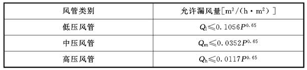按風(fēng)管系統(tǒng)類別所規(guī)定的平均單位表面積、單位時間內(nèi)最大允許漏風(fēng)量。